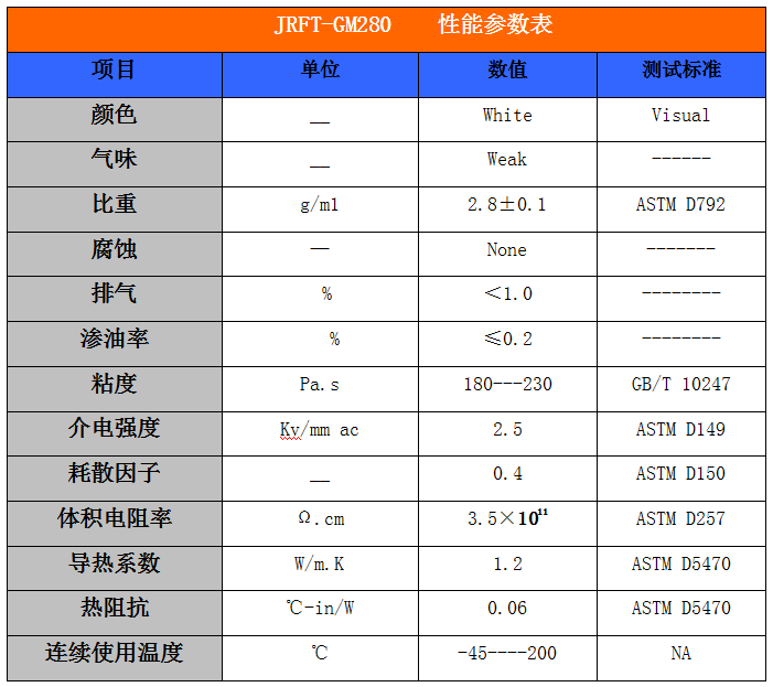 导热硅脂很多人习惯叫它导热膏。它是以特种硅油做基础油,新型金属氧化物做填料,加配多种功能添加剂,经特定的工艺加工而成的膏状物,颜色因材料不同而具有不同的外观。导热硅脂具有不同颜色的分类:(白色导热硅脂型号:GM280 GM400、灰色导热硅脂型号:GM500),导热硅脂具有良好的导热、耐温、绝缘性能,是耐热器件理想的介质材料,使用中不会产生腐蚀气体同时也不会对所接触的金属界面产生影响。高纯度的填充物和有机硅是产品光滑、均匀及高温绝缘的保证。涂抹于大功率器件和散热器装配面,帮助消除接触面的空气间隙增大热流通,减少热阻,减低功率器件的工作温度,提高可靠性和延长使用寿命。